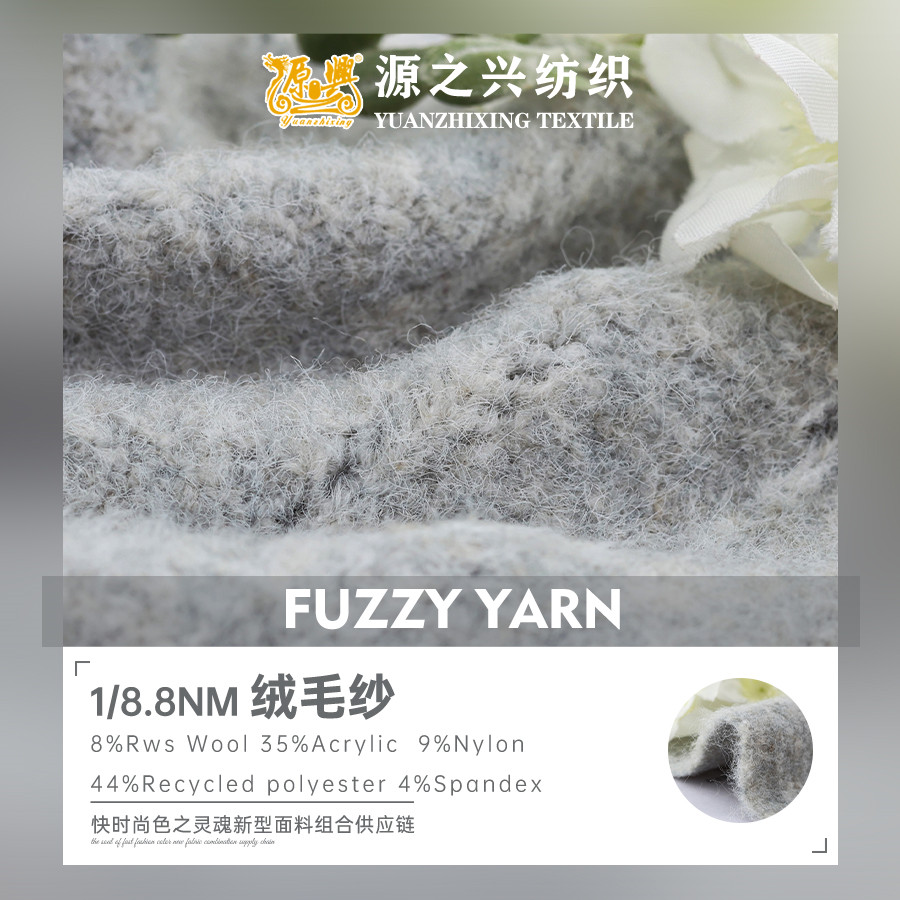 1/8.8NM 8%Rws Wool 35%Acrylic 9%Nylon 44%Recycled polyester 4%Spandex